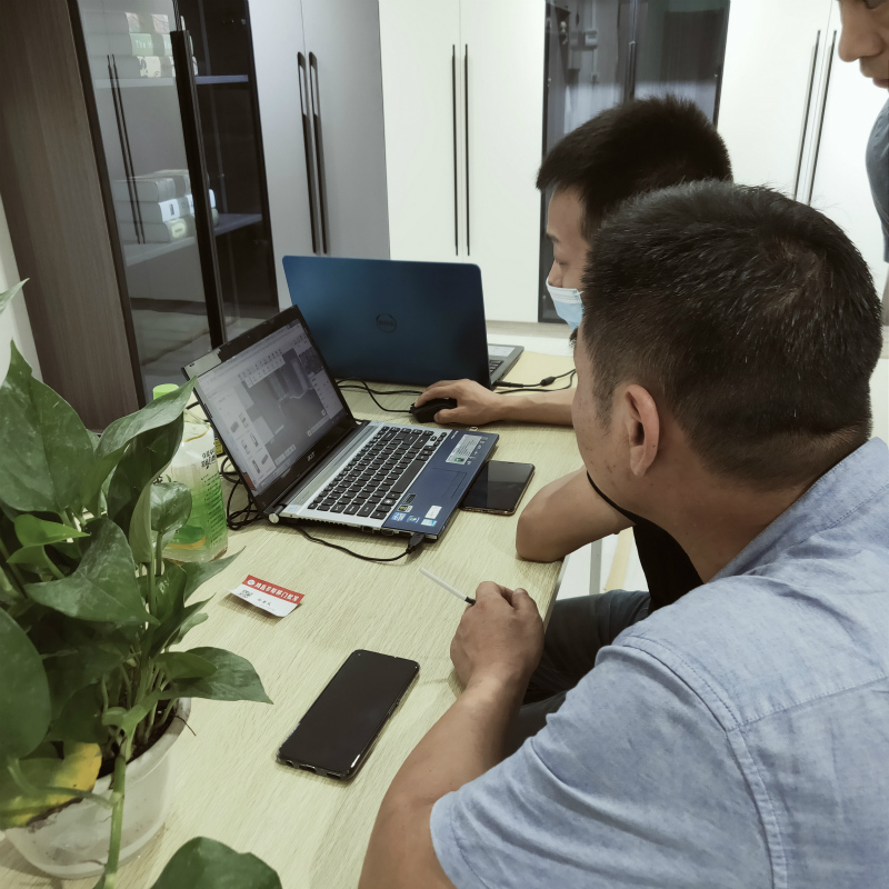 霞菲尔小伙伴为客户讲解酷家乐产品,以及产品对于门店促单的重要性。