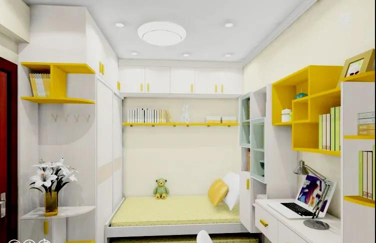 ▲不做榻榻米,换成子母床+衣柜+书桌柜的组合形式也不错,一房多用不在话下。