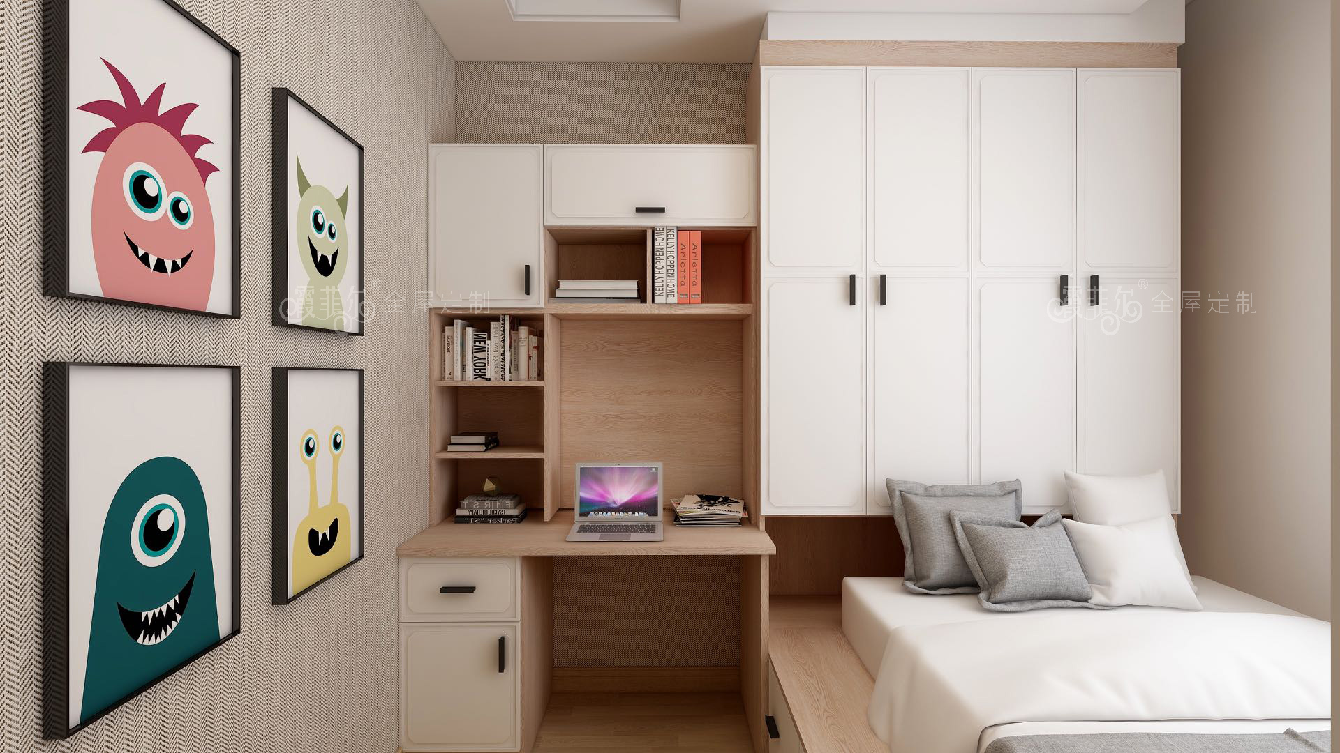设计以清新的木纹色做设计主色调,配以精致凹凸质感的象牙白色,自由平和,又不不失生活热情。