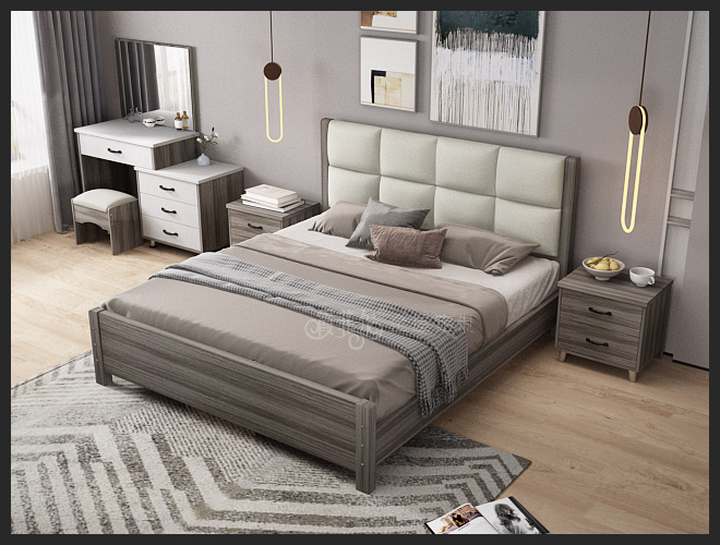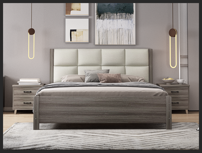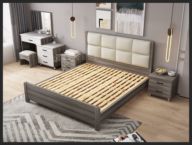 现代888实木床一卧室空间